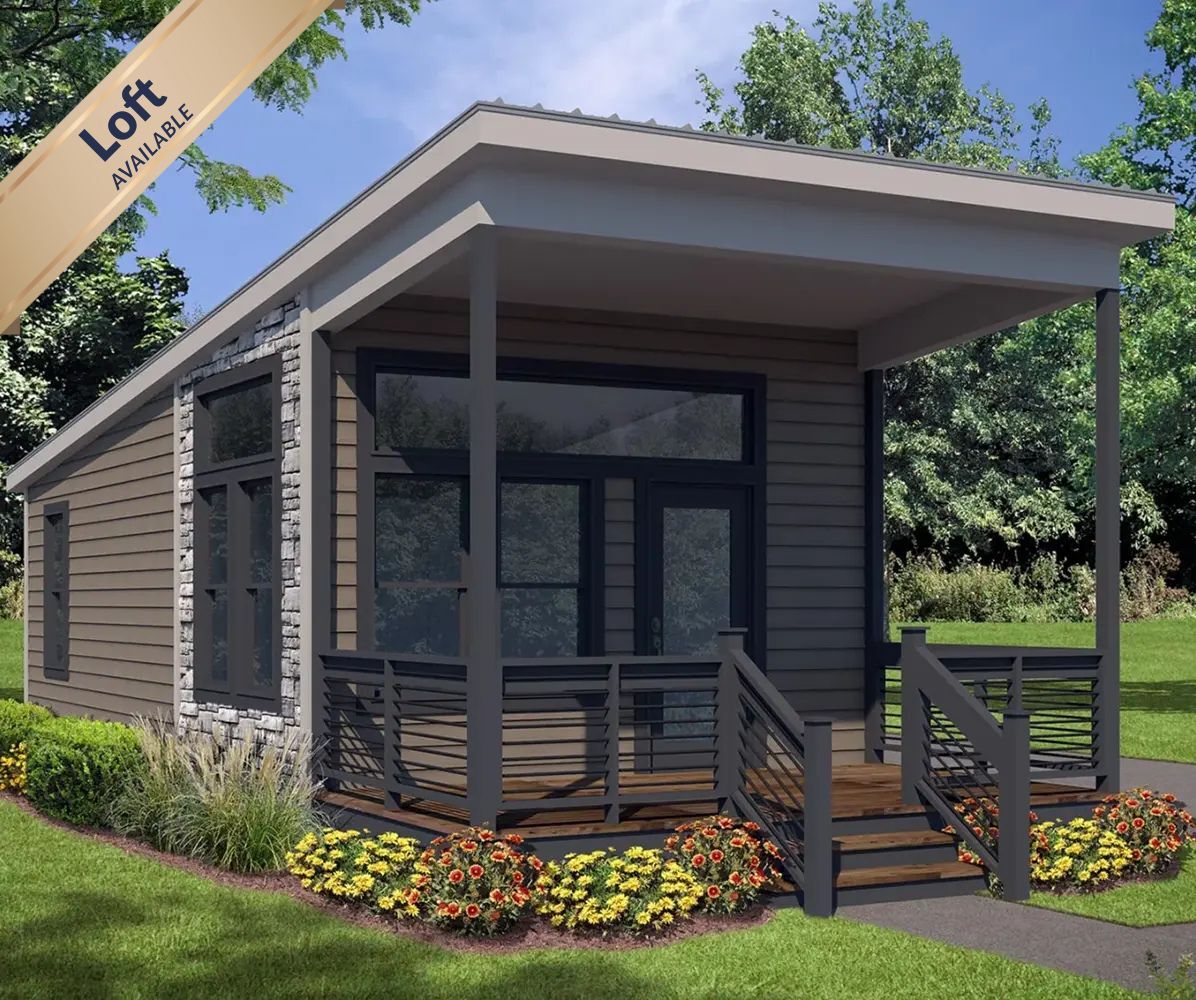 The Ridgeline offers a spacious, one-bedroom layout that makes the most of every inch — perfect for solo living, couples, or a rental retreat. With 390 sq. ft. of well-planned space, a full kitchen, and a cozy loft option, it delivers simple luxury in a compact footprint.